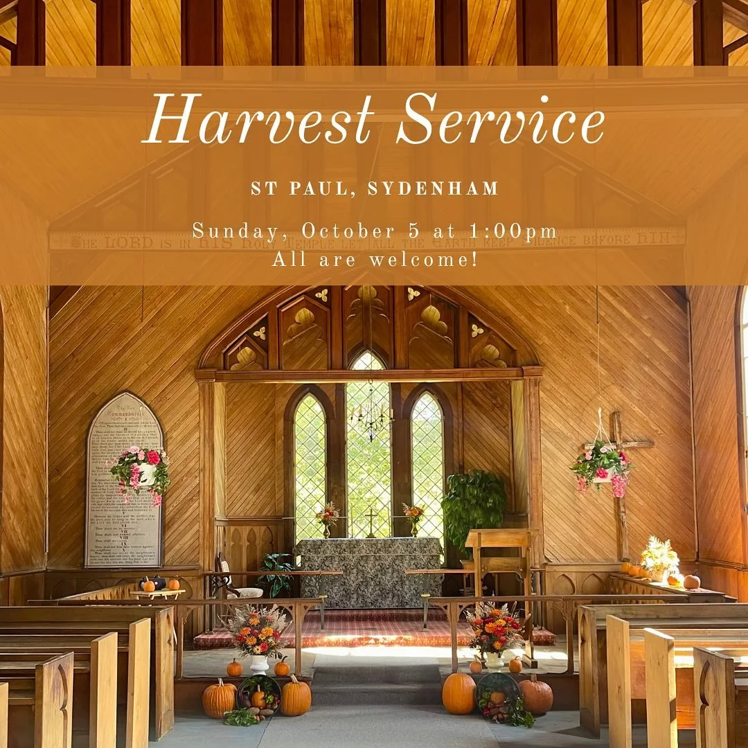 All are welcome to St Paul, Sydenham (Chemin de Domaines near St. Felix de Kingsey) on October 5 at 1:00pm for its annual service of Thanksgiving.